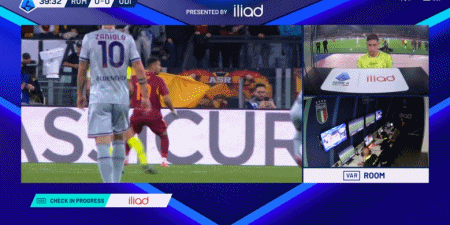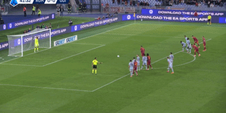 第42分钟,卡马拉手球送点,佩莱格里尼主罚点球命中,罗马1-0