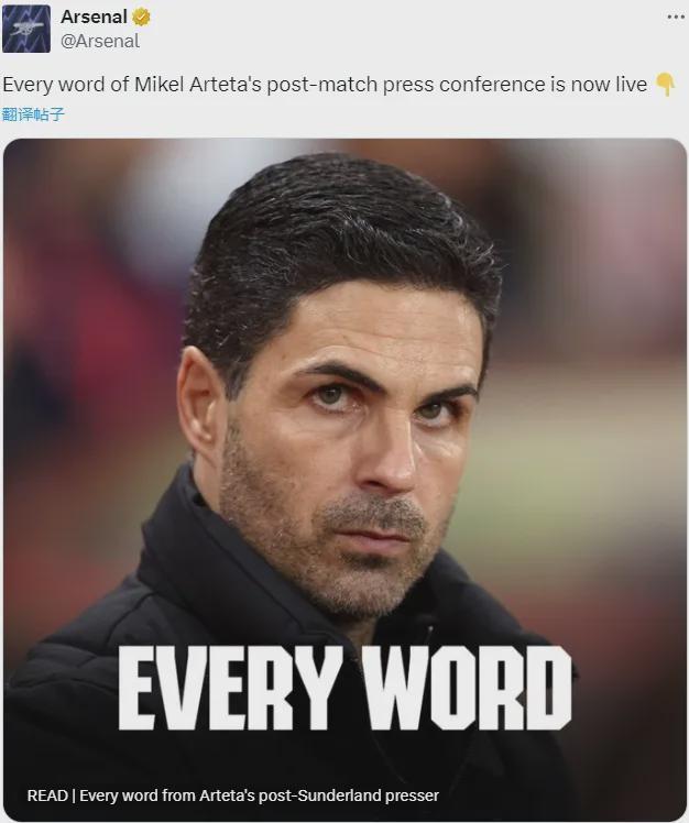 阿尔特塔出席了赛后新闻发布会,我们来看看阿森纳主帅谈到了哪些问题。